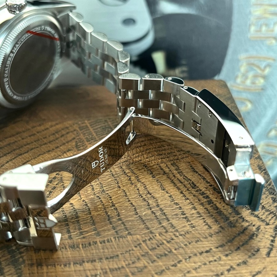 Diese wunderschöne Black Bay ist ungetragen. Sie hat keine Swirls oder Kratzer. Am Gehäuseboden ist noch die original Abklebung vorhanden. Die Gangergebnisse dieser Tudor sind hervorragend.